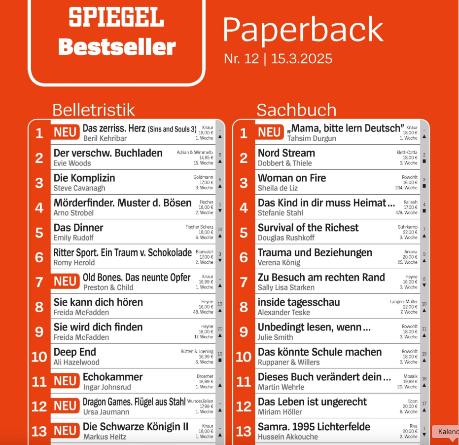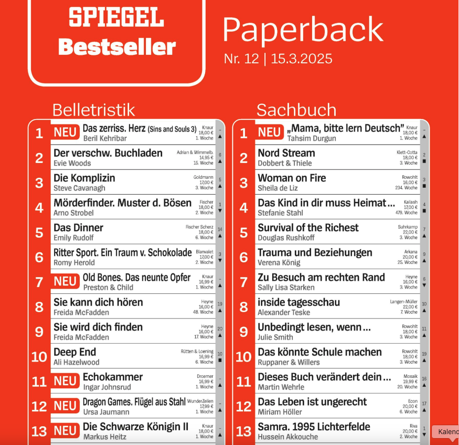 Echokammer climbed right onto the prestigious list of Spiegel Bestsellers after it’s release in Germany.